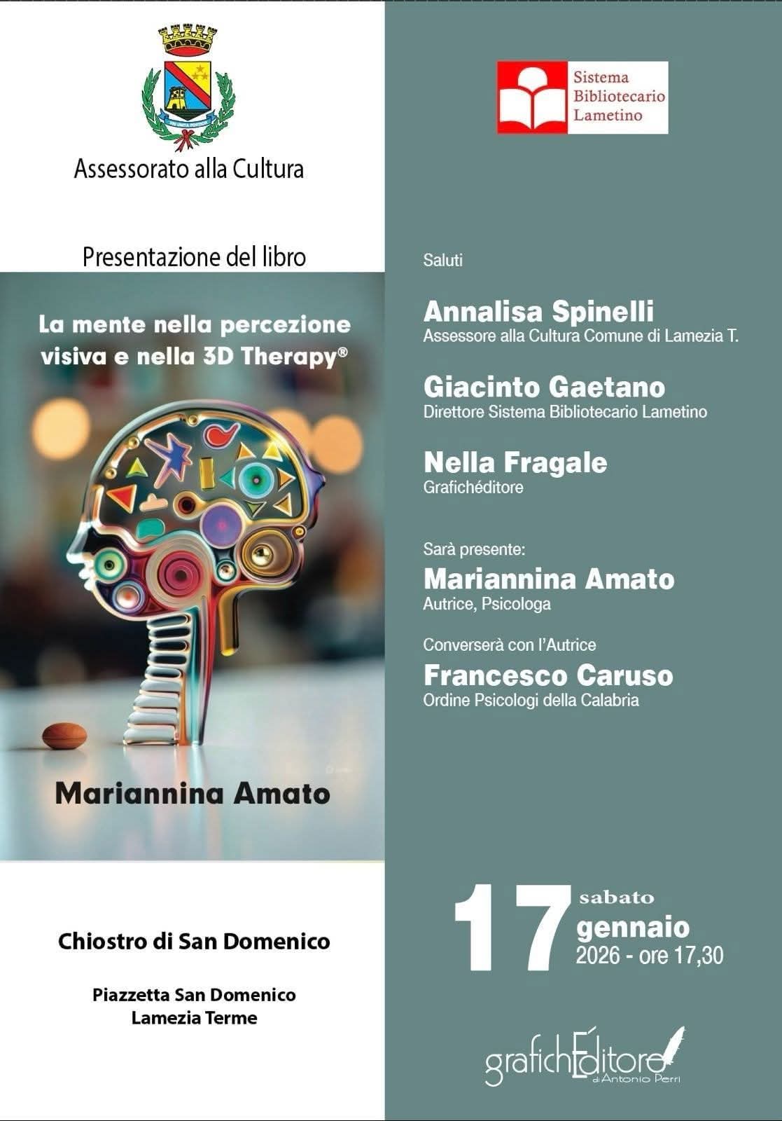 15 Gennaio 2026 17 gennaio 2026 – Presentazione libro “La mente nella percezione visiva e nella 3D therapy” HomeCalendario eventi17 gennaio 2026 – Presentazione libro “La mente nella percezione visiva e nella 3D therapy”