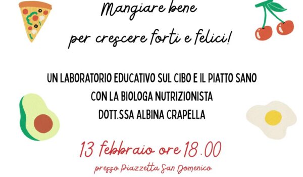 Un laboratorio educativo sul cibo e il “piatto sano” condotto dalla biologa nutrizionista Dott.ssa Albina Crapella. L’incontro mira a insegnare come mangiare bene per crescere forti …